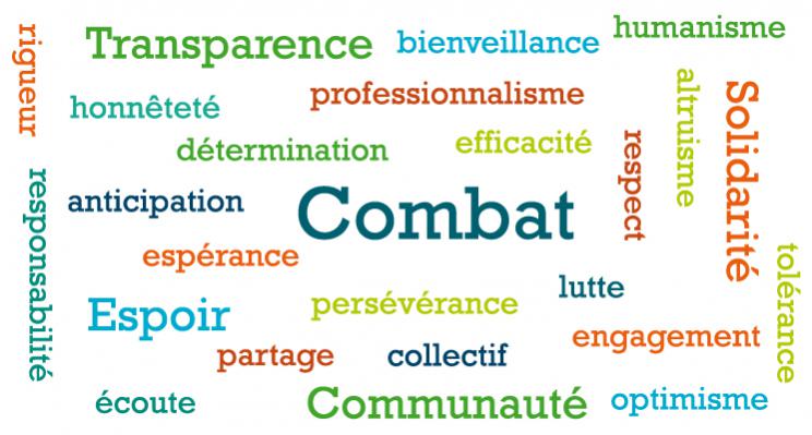 Pour que la communauté des adhérents, des bénévoles, des soignants et des chercheurs œuvre avec plus de force et de rapidité au bénéfice des malades et des familles. Pour qu’altruisme, bienveillance et respect guident nos actions.